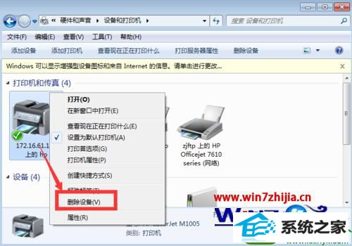 2、右击打印机将其删除;