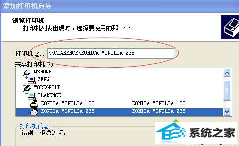 8、点击你要连接的那台共享打印机上面的打印机小窗口有一个打印机的名称,复制下来;