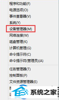 3、或者大家也可以直接按win+x键,选中跳出的菜单中选中“设备管理器”;